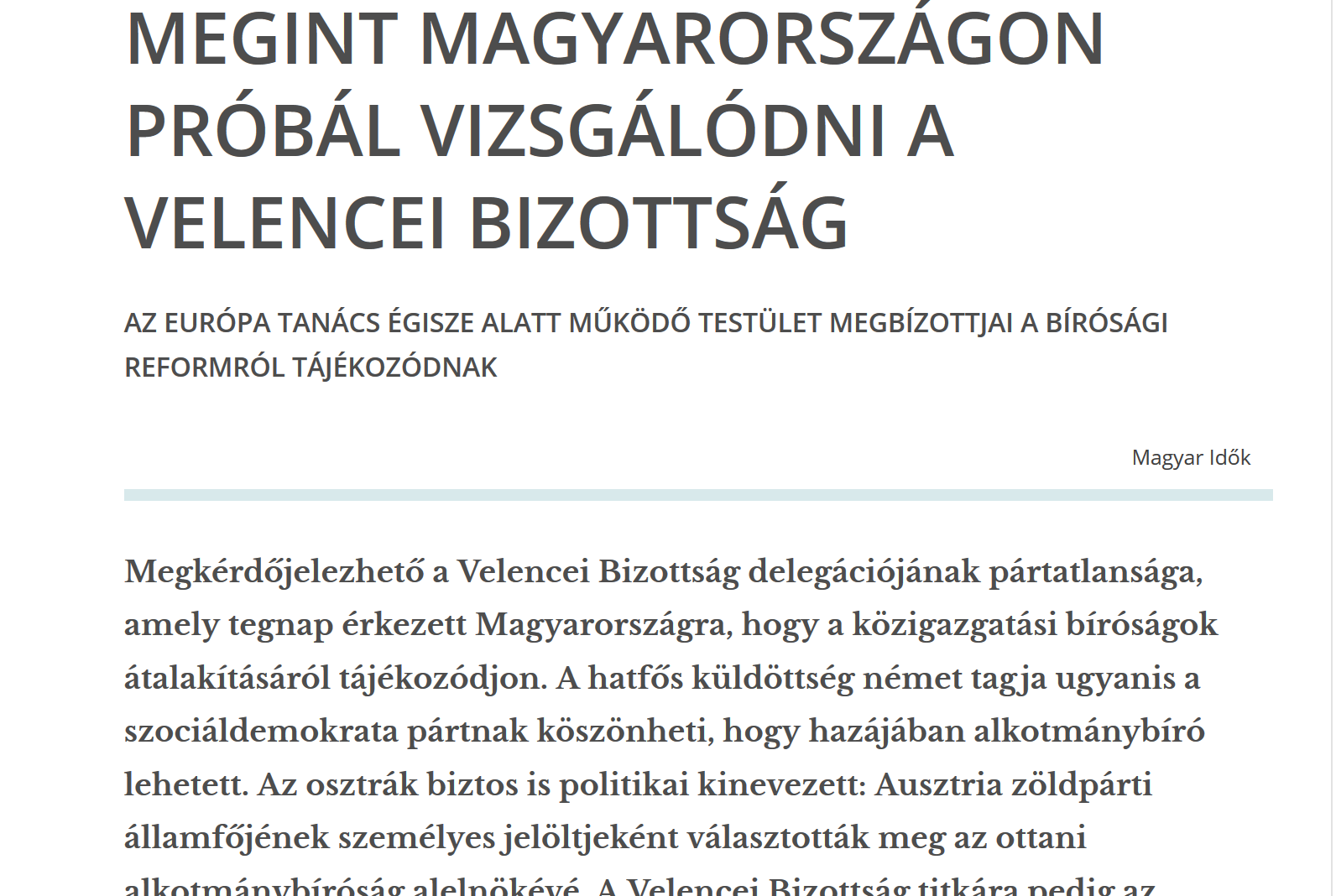 - MAGYAR IDŐK: Comisia de la Veneţia se află din nou într-o misiune de evaluare, în Ungaria