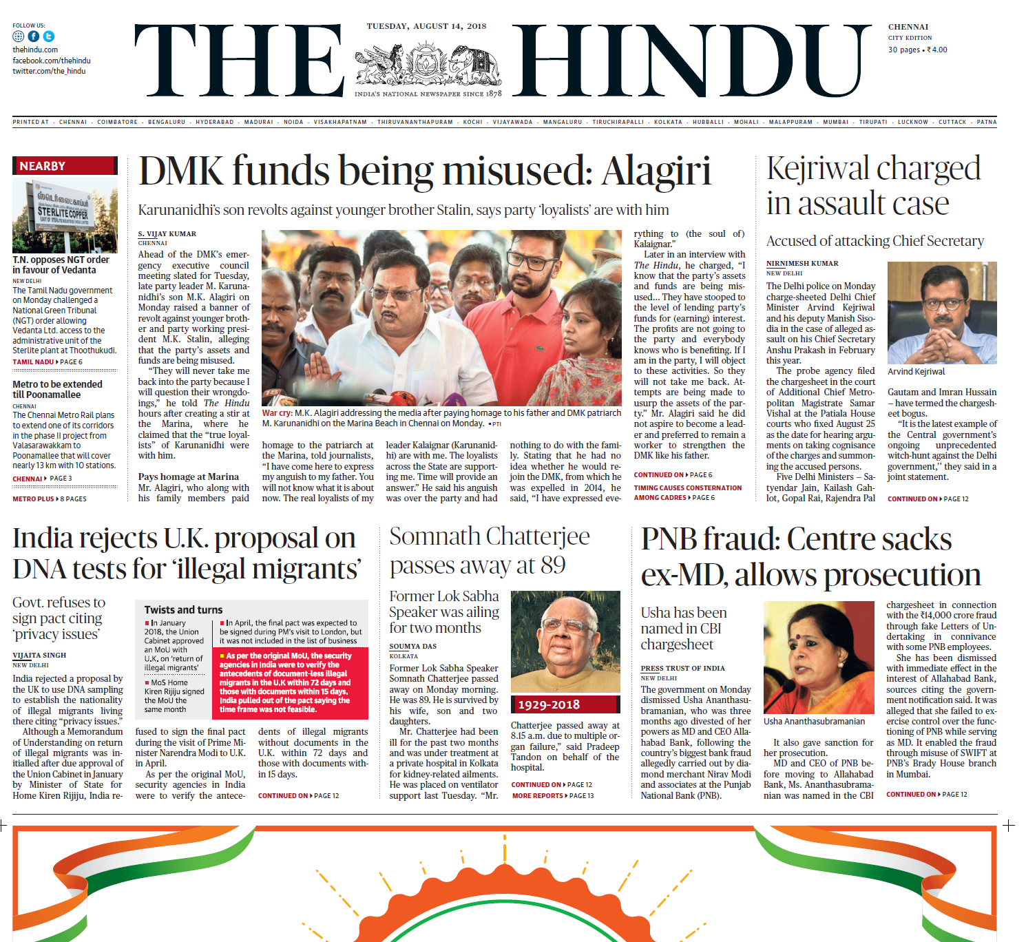 - THE HINDU – Fondurile partidului DMK au fost utilizate în mod abuziv. Fiul lui Karunanidhi se revoltă împotriva fratelui mai tânăr
