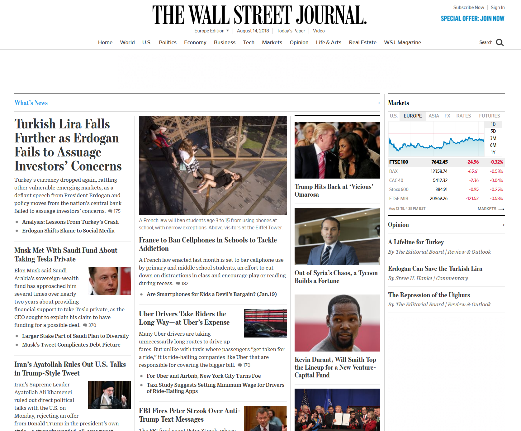 Presa europeană deschide marți în general cu subiecte legate de criza Turciei- aceasta e îngrijorarea principală, urmată de subiecte proprii fiecărei țări. Francezii scriu despre Parcoursup (noua lege privind înscrierea în învățământul superior), germanii despre implicațiile locale ale scandalului Monsanto, indienii au respins o propunere a Regatului Unit de a utiliza probe ADN pentru a stabili naționalitatea migranților ilegali care trăiesc în UK. Elvețienii sunt preocupați de ”fronda” intelectualilor chinezi care denunță cultul personalității lui Xi Jinping, care s-ar fi aflat la originea războiului comercial cu SUA. Dar mai pe larg, în rândurile de mai jos. Ziarele monitorizate: Wall Street Journal, Financial Times, Handelsblatt, Le Temps (Elveția), Les Echos, The Hindu, Washington Post și altele.