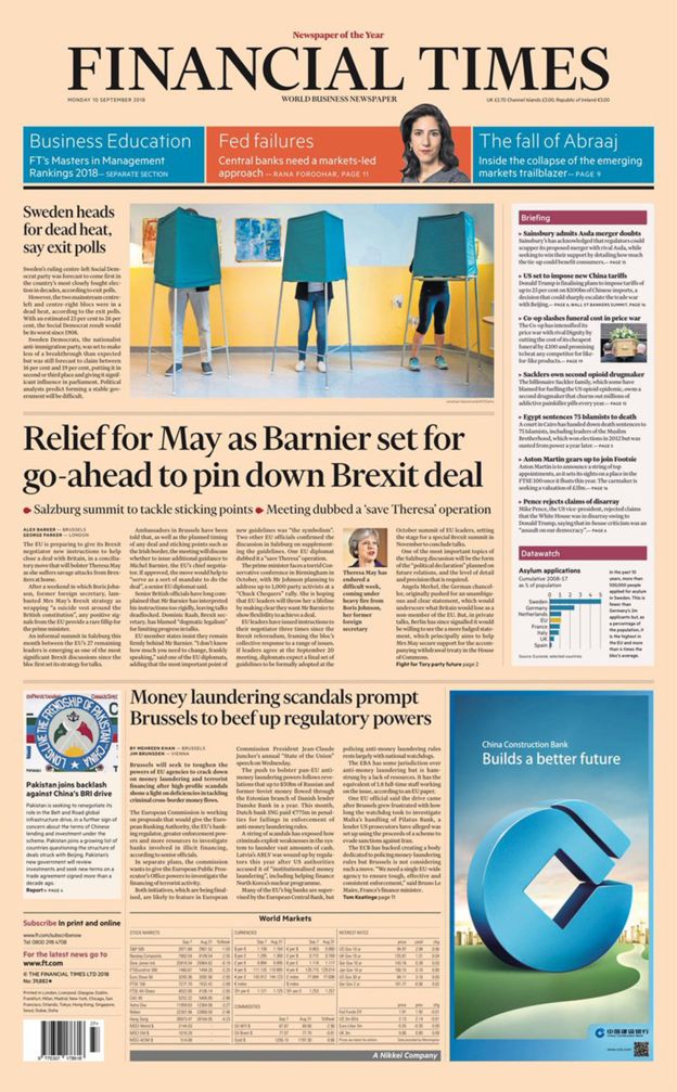 FINANCIAL TIMES: Alegerile parlamentare din Suedia par să confirme la guvernare blocul de centru-stânga ● LES ECHOS: Franța își va anunța noua strategie spațială ● 10 ani de la căderea Lehman. Ce s-a schimbat de atunci? ● HANDELSBLATT: Apel de urgență al administratorului sistemului feroviar ● LE MONDE: Noul imperiu naval al Chinei ● Stiglitz: Trump este președintele celor superbogați. Nu sunt foarte încrezător în capacitatea europenilor de a face față unei noi crize. Lectură plăcută.