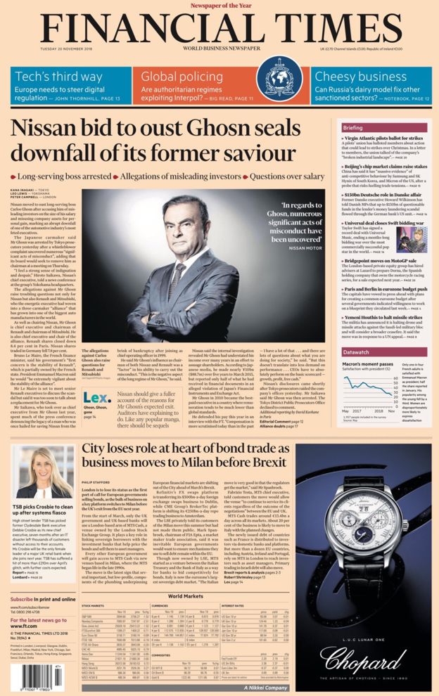 Financial review Prima pagină a presei străine: Este Interpolul manipulat de regimurile autoritare? Arestarea lui Ghosn provoacă temeri. Brexit și Trump: Răspunsuri facile. Umbra primului Război Mondial bântuie industria energetică