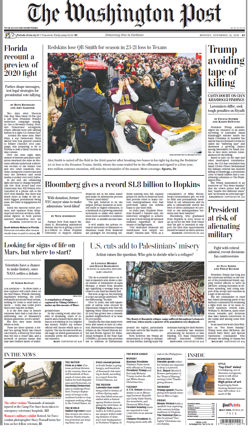 De partea aceasta a iazului [Oceanul Atlantic – n.trad.], președintele Trump a revenit la activitățile sale de ațâțare a fricii – temele legate de un „carnagiu american” evocate în cursul alegerilor generale au constituit un nou memento că am rămas blocați aici cu inepția sa periculoasă și învrăjbitoare pentru cel puțin încă doi ani.