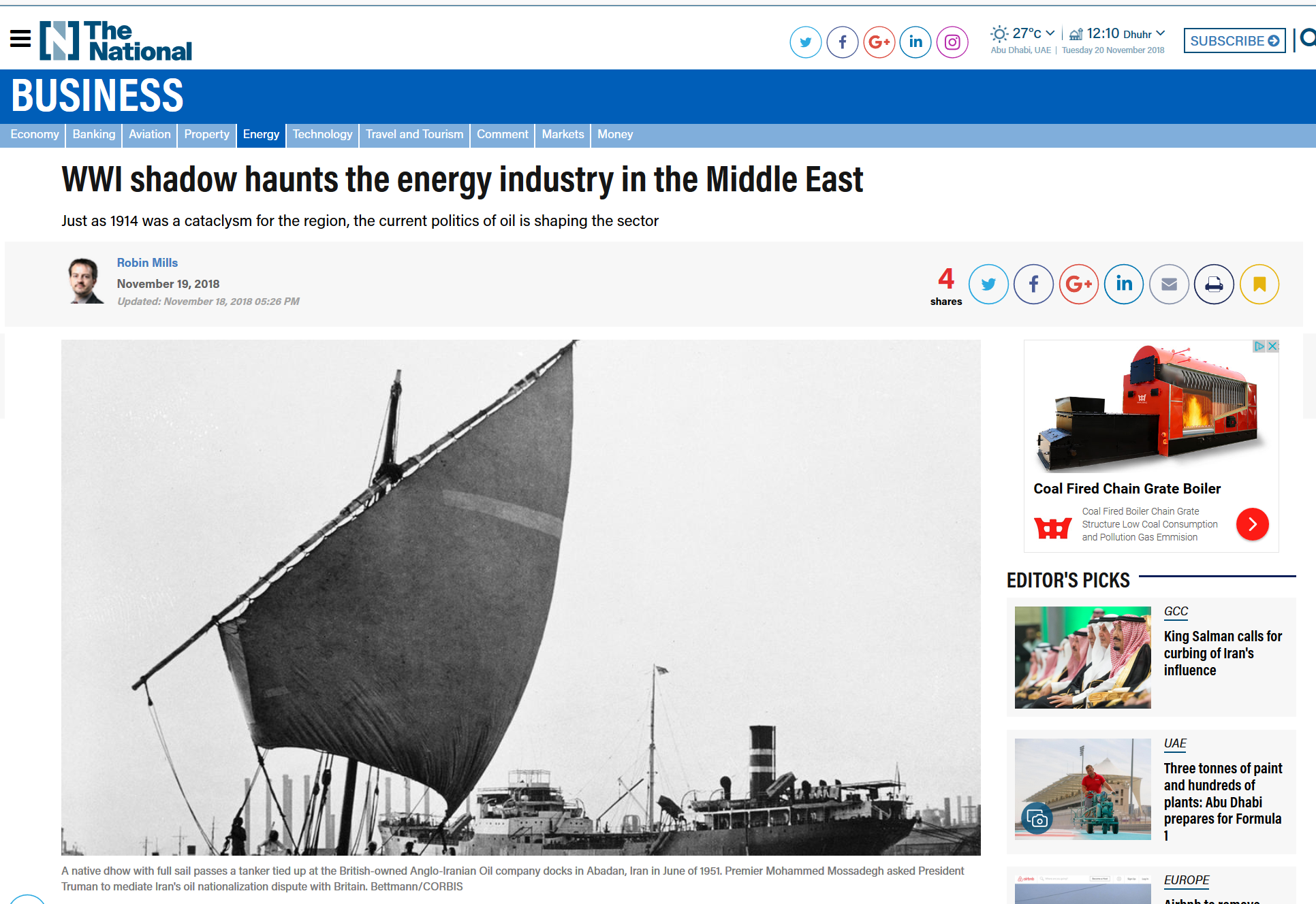 - The National (Emiratele Arabe): Umbra primului Război Mondial bântuie industria energetică din Orientul Mijlociu