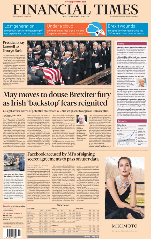 Financial Times: CFO-ul Huawei, arestat în Vancouver ● Fost consultant McKinsey, favorit pentru postul de premier elen ● UK publică emailuri private ale șefilor Facebook, acuzând compania că ar fi încheiat tranzacții secrete care permit accesul unor dezvoltatori la datele utilizatorilor ● Handelsblatt: Volkswagen trece la un program dur de austeritate ● L`Echo: ”Probabilitatea unei recesiuni crește. Va veni la un moment dat ” (Goldman Sachs) ● La Stampa: Salvini sfidează Europa: „Stop misiunii Sophia dacă nu se impun noi reguli pentru debarcarea migranţilor” ● Il Fatto Quotidiano: Khashoggi: Turcia a emis mandate de arestare pentru doi saudiţi prieteni cu prinţul. Lectură plăcută!