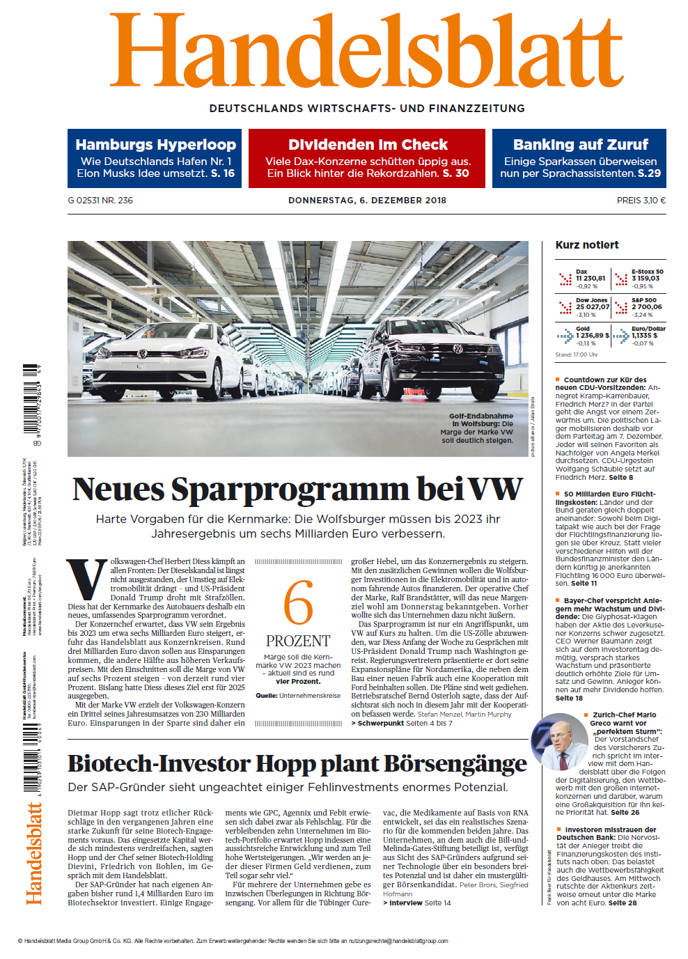 Șeful Volkswagen, Herbert Diess, luptă pe toate fronturile: scandalul diesel este departe de a se fi terminat, trecerea la electromobilitate este tot mai presant, iar președintele american Donald Trump amenință cu impunere de tarife punitive exporturilor europene de automobile. Acest lucru impune, prin urmare, un program cuprinzător de austeritate , spune Diess.