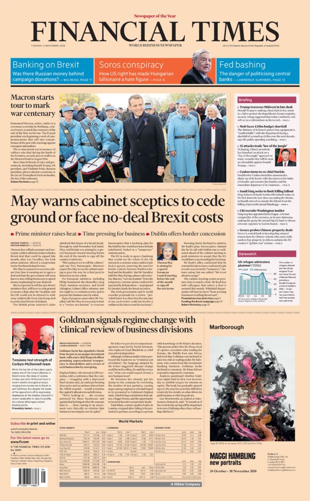 - Financial Times: May își avertizează miniștrii eurosceptici să accepte un compromis sau să își asume costurile unui Brexit dur