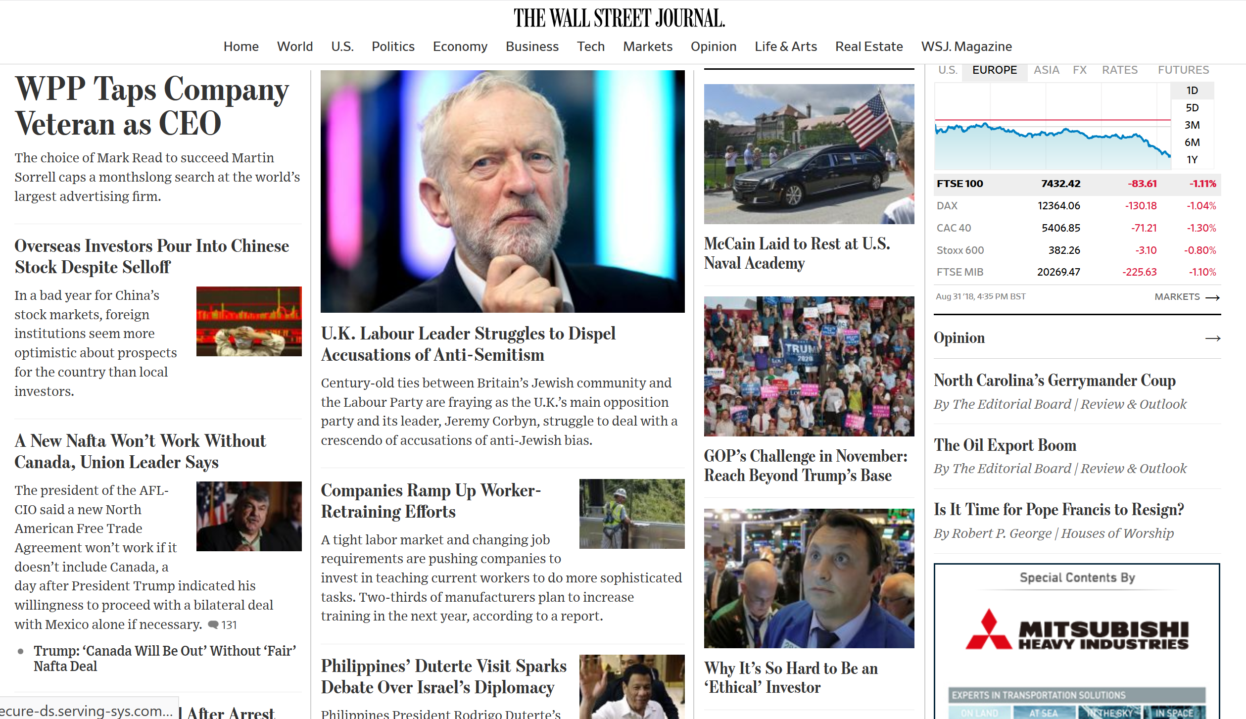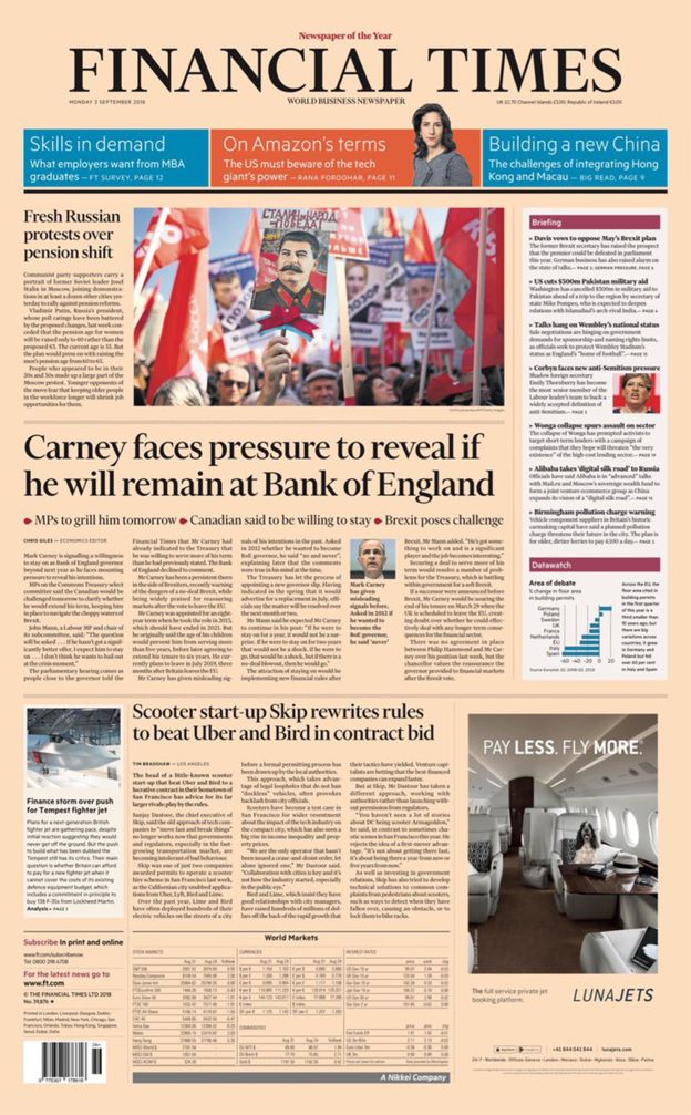 Financial review. Prima pagină a ziarelor de luni: Cel mai mare IFN britanic intră în faliment. La Chemnitz, bănuială de blat între autorități și extremiști. Noi proteste în Rusia. Criza valutelor emergente alimentează teama de contagiune