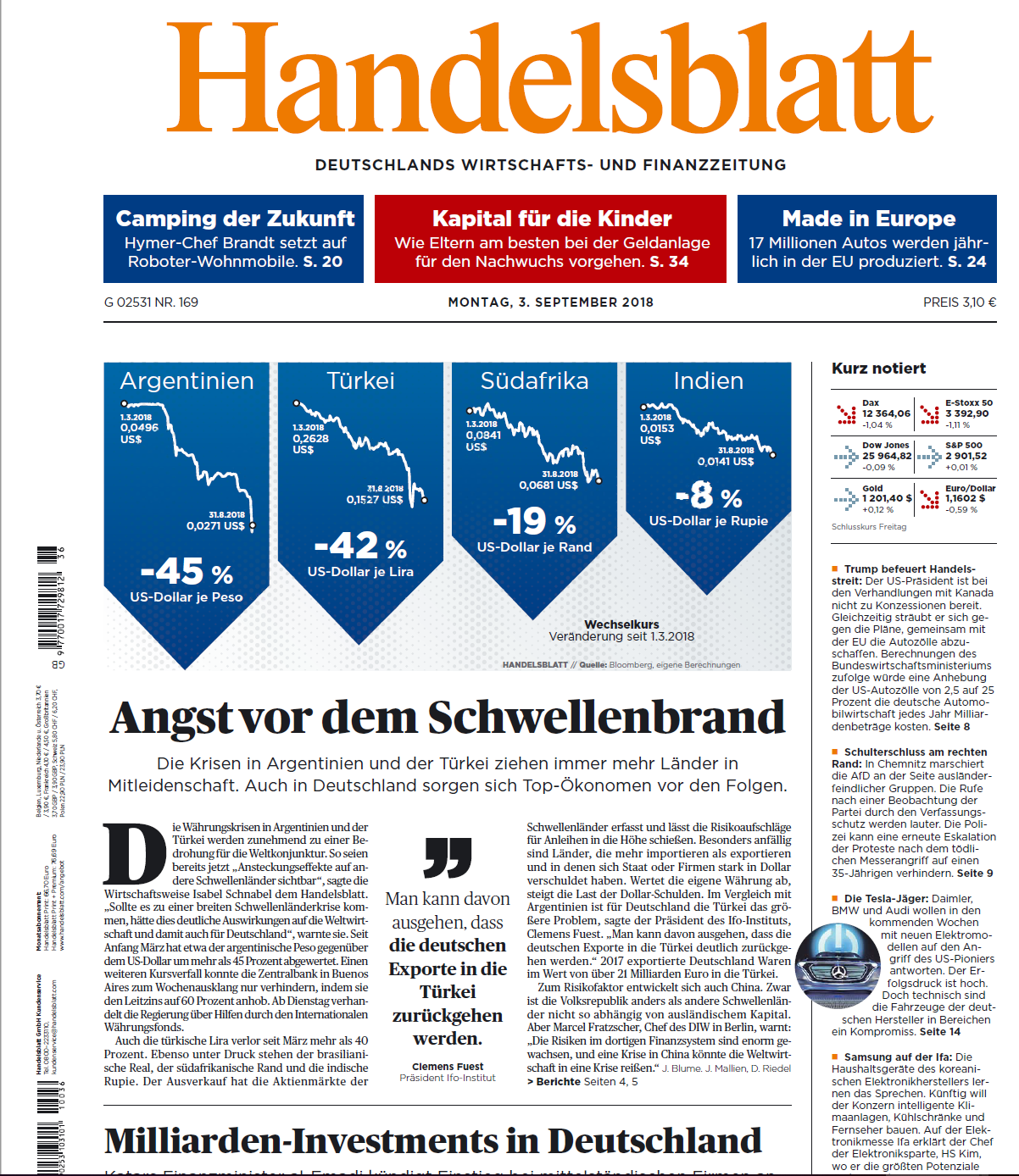 Turcia, Argentina, Brazilia, India, Indonezia trec printr-o furtună valutară. Economiștii de vârf avertizează cu privire la consecințele contagiuniii pe scară largă. Unul dintre acești economiști, Isabel Schnabel , a declarat pentru Handelsblatt că o viitoare criză a piețelor emergente ar putea avea un impact semnificativ asupra economiei globale și astfel, asupra Germaniei.