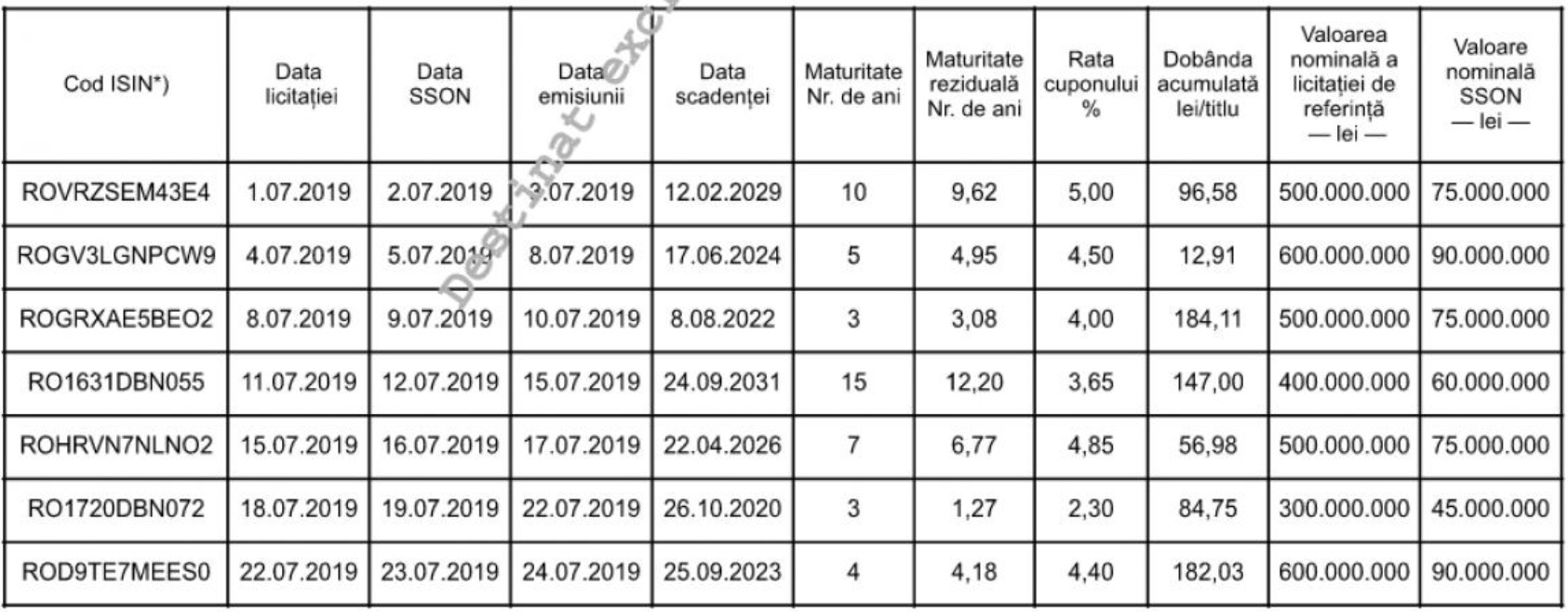 Cea mai mare maturitate reziduală la licitațiile din iulie este de 12 ani, fiind vorba de obligațiuni de tip benchmark.