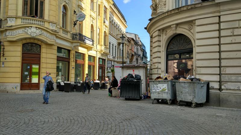FOTO Bucurestiul, un oras al nimanui. In centrul Capitalei, tomberoanele de gunoi zac sfidator pe marile bulevarde, in pietele pietonale si pe strazile din centrul istoric