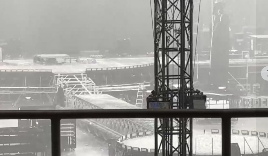 Potrivit paginii Meteoplus, la ora 23.15, pe scena de la Arena Națională nu mai era decât grindină.