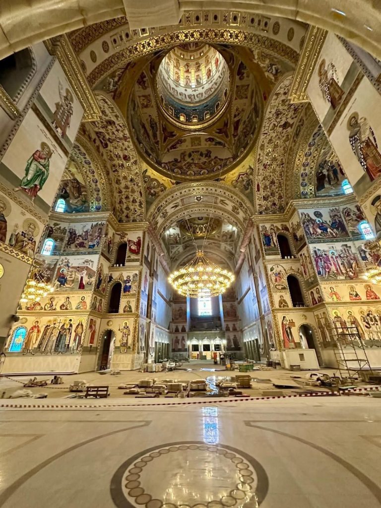 Lucrările la Catedrala Mântuirii Neamului au avansat, însă construcția nu va fi gata până la inaugurare, a scris HotNews la începutul lunii februarie, când reporterii au vizitat șantierul de lângă Palatul Parlamentului.