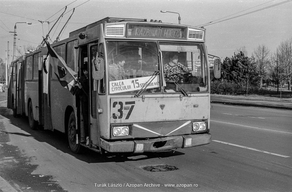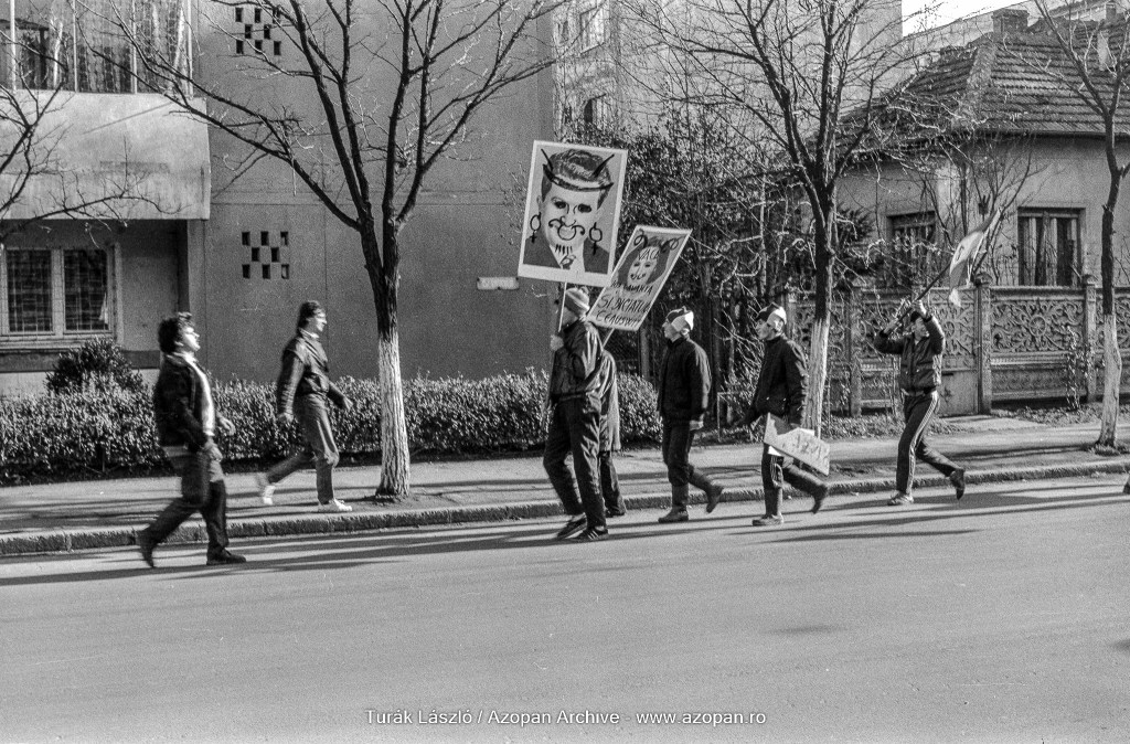 Autobuze pe care scrie ”Răzbunați morții”, oameni care țin portrete în care lui Ceaușescu i s-au desenat coarne și panouri lipite de Catedrală cu ”Jurăm să nu plecăm”, acestea sunt câteva ipostaze dintre cele peste 70 de imagini inedite din Timișoara, postate pe site-ul azopan.ro.