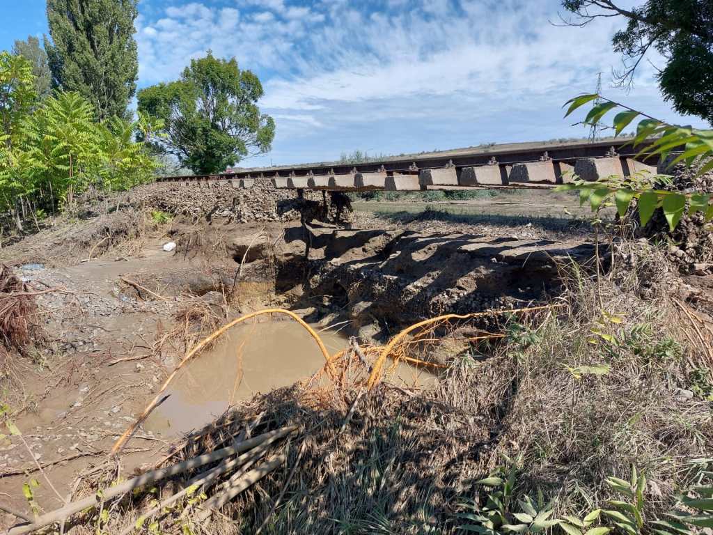 În unele locuri, calea ferată a rămas „suspendată” în aer, după ce s-a surpat terenul de sub ea, după cum se poate vedea din fotografiile transmise către HotNews.ro de reprezentanții Transferoviar.