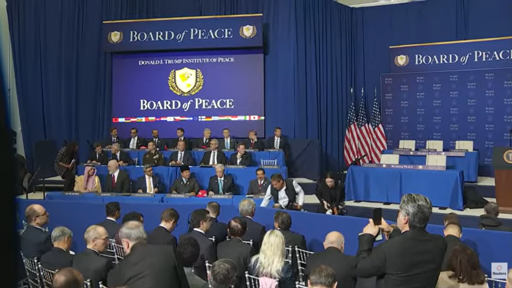 La sfârşitul lunii ianuarie, președintele american Donald Trump a lansat „Consiliul pentru Pace”, o inițiativă care, potrivit acestuia, va avea ca scop rezolvarea conflictelor globale, între care războiul din Fâșia Gaza, și promovarea stabilității, păcii și guvernanței „în zonele afectate sau amenințate de conflicte”.