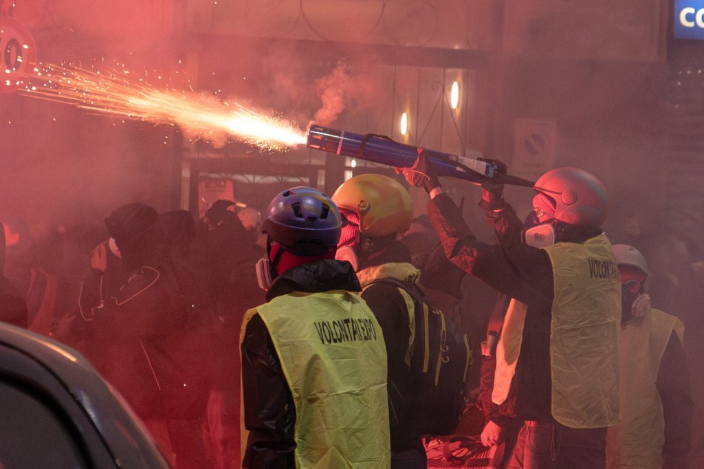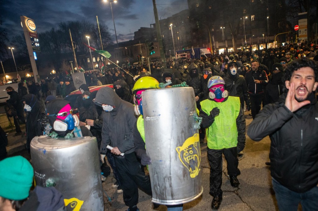 Șase persoane au fost reținute de forțele de ordine după ce demonstrația de la Milano, care a început pașnic, a degenerat în violențe. Un grup de manifestanți a atacat poliția cu pietre și torțe, moment în care autoritățile au intervenit utilizând tunuri cu apă pentru a dispersa mulțimea.