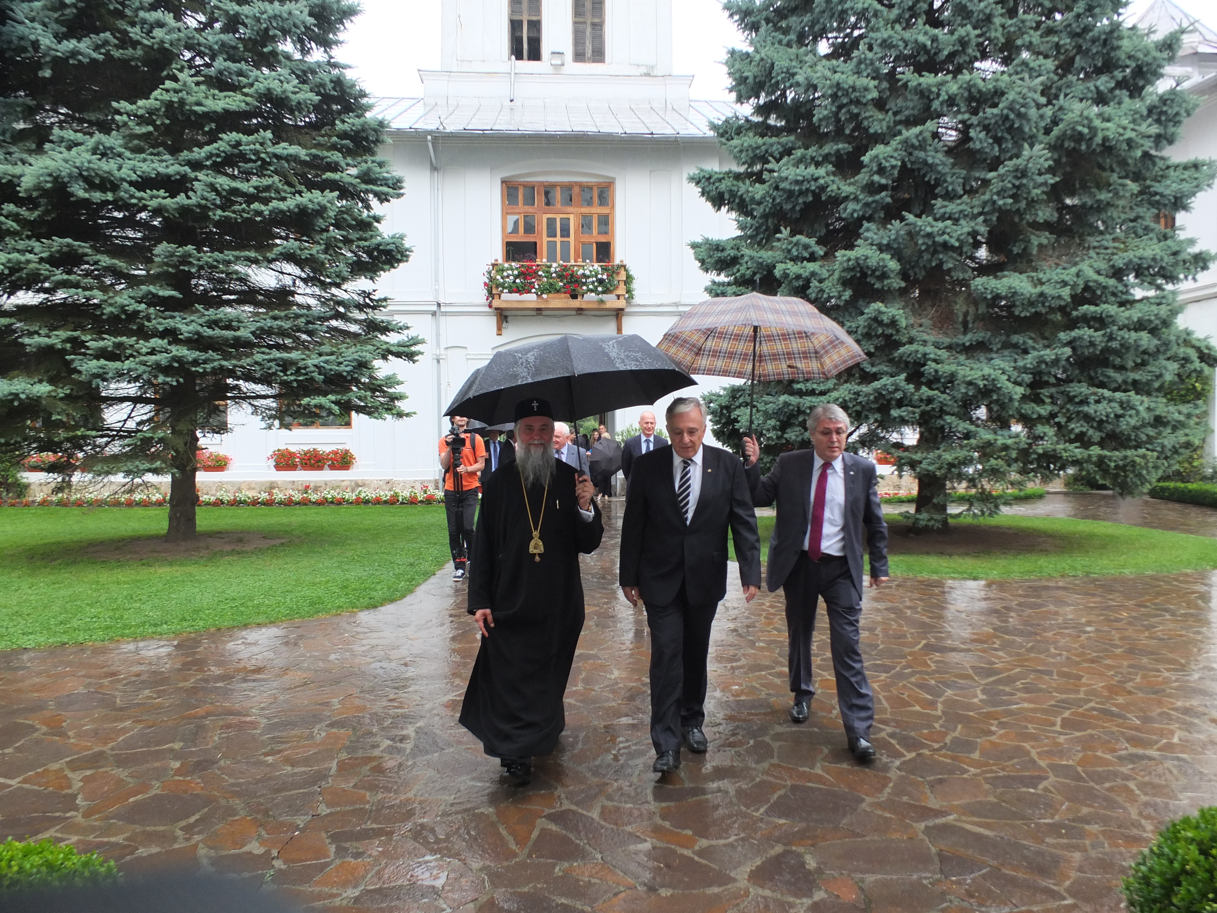 „Uite draga, Presedintele!!!”, striga una din turistele imbracate nu cel mai potrivit pentru manastire. Pantaloni scurti, camasa (cam) decoltata, capul descoperit samd. „Nu e, fa presedintele, ce sari asa. E ala de-a fost premier, cum ii spune?..acuma e viceguvernatorul BCR. Uite, e cu Patriarhul. Scoate repede telefonul sa-i prindem in poza”, ii spune cu o voce plictisita barbatul. Femeia scoate telefonul si face rapid 2-3 instantanee. Pronia divina isi spune primul cuvant, Desi barbatul era convins ca ii pozase pe Presedinte si pe viceguvernatorul BCR, Domnul si Dumnezeul nostru in marea Sa mila va face ca in poza celor doi dreptcredinciosi sa apara doar Mugur Isarescu alaturi de mitropolitul Olteniei, Irineu.