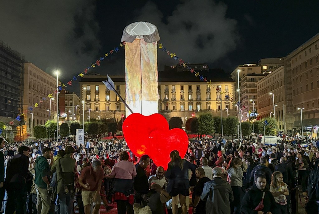 O lucrare de artă de 12 metri, instalată într-una din principalele piețe din Napoli și creată de designerul italian Gaetano Pesce, provoacă nedumerire printre localnici din cauza formei care indic un phallus, la care se adaugă și un nume sugestiv, informează Reuters.