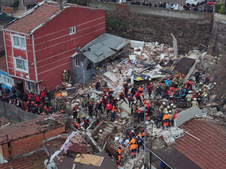 FOTO VIDEO Două clădiri s-au prăbușit la Istanbul după o explozie puternică. Mai multe persoane prinse sub dărâmături