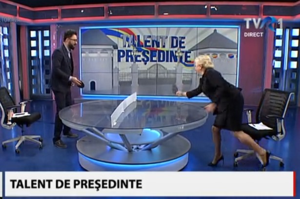 Viorica Dancilă a jucat tenis de masă, miercuri seară, în direct la TVR1 cu Ionuț Cristache, în cadrul emisiunii electorale ”Președinte de votat”.