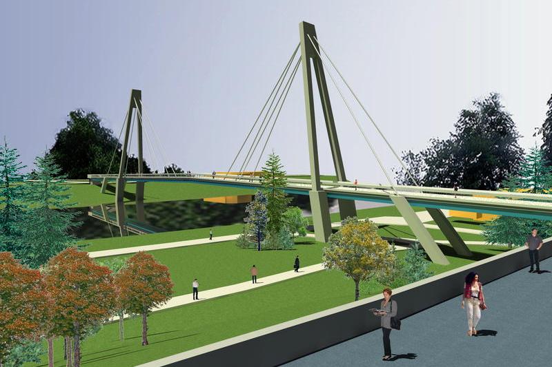 FOTOGALERIE Arad: Pasarela hobanata pentru pietoni si biciclisti peste raul Mures in valoare de 2,35 milioane de euro