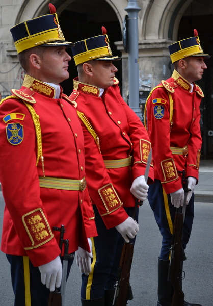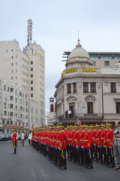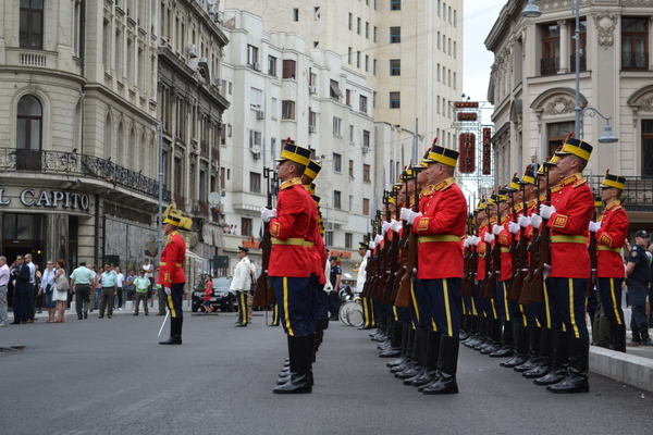 Bucurestenii care au participat marti la ceremonia militară dedicată Zilei Imnului Naţional au vazut o schimbare simbolica majora in randul soldatilor romani care dau onorul demnitarilor. Astfel, militarii din Regimentul de Gardă „Mihai Viteazul” au fost imbracati intr-o uniforma rosie, pentru prima oara in istoria acestui regiment. Ministerul Apararii Nationale arata intr-un comunicat ca este vorba despre o uniforma „de vară de protocol”. Rosul nu a mai fost folosita in vestimentatia Regimentului de Garda.