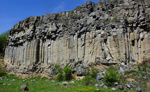 Lipite de zona vulcanica se afla coloanele de bazalt, un ciudat semn a unei eruptii vulcanice, de o frumusete rara, apreciata de amatorii de geoturism.