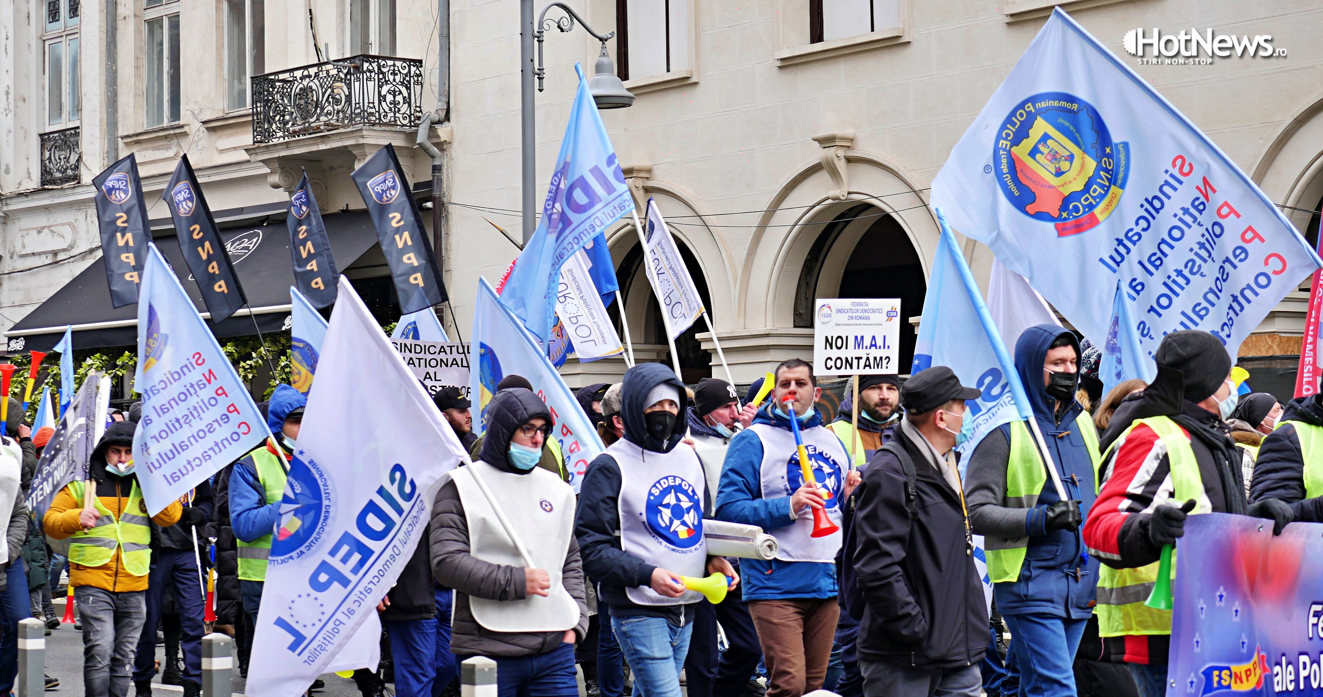 Peste 1.500 de angajați din poliție, penitenciare și militari rezerviști protestează miercuri în Piața Victoriei, cu deplasare spre Parlament. Printre nemulțumirile personalului MAI se numără scăderea unor pensii de serviciu, condițiile de muncă, iar protestatarii spun că ar trebui angajate mai multe persoane în sistem. Din cauza manifestaţiei, sunt restricţii de circulaţie în Capitală.