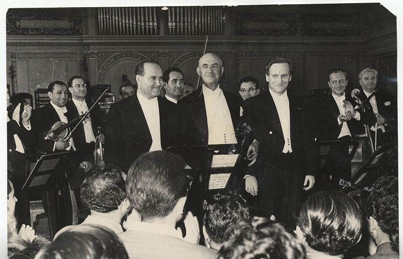 Georgescu, Menuhin, Oistrah la editia din 1958 a Festivalului Enescu (sursa foto: Muzeul National George Enescu)