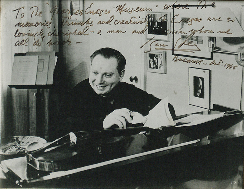 Arthur Rubinstein ofera un autograf la editia din 1964 a Festivalului George Enescu (sursa foto: Muzeul National George Enescu)