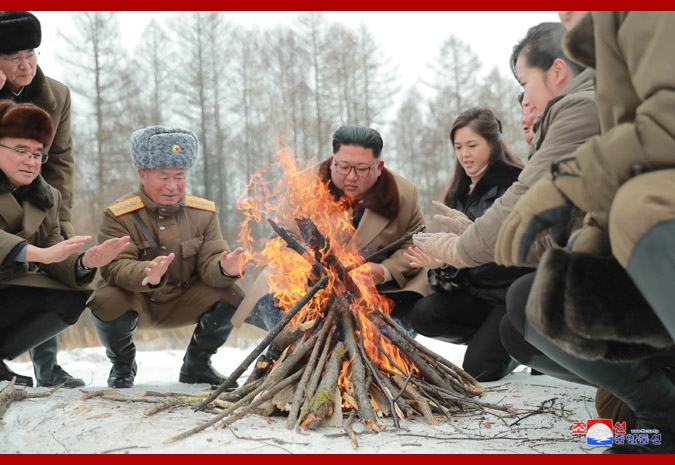 Printre cei din grup poate fi recunoscută şi soţia sa, Ri Sol Ju, conform unor fotografii difuzate de agenţia oficială de presă KCNA. Din grup fac parte în special ofiţeri militari de rang înalt, iar vizita ar avea ca scop insuflarea unui „spirit revoluţionar” în popor, tot conform KCNA, preluată de Reuters.