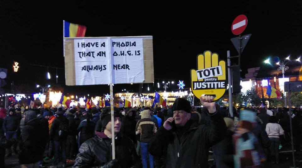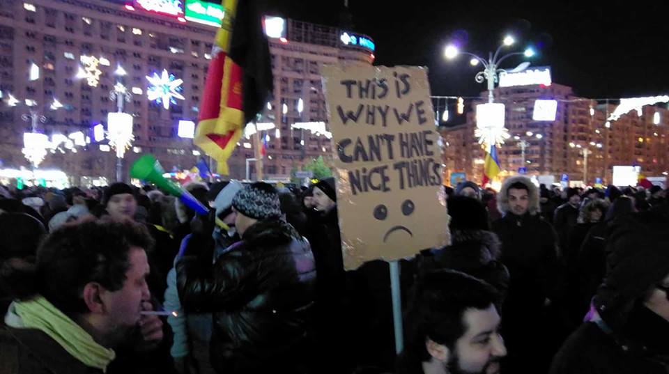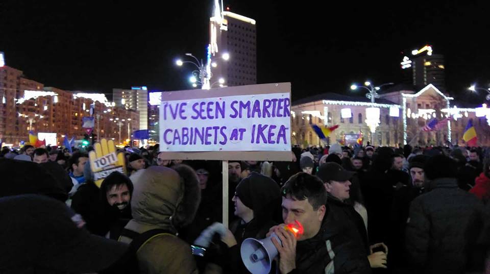 Protestul din Piata Victoriei din Bucuresti a strans duminica seara zeci de pancarte cu mesaje muscatoare si amuzante la adresa coalitiei care incearca decapitarea Justitiei. Mesajele amintesc de protestele din ianuarie-februarie, cand creativitatea protestatarilor romani a facut inconjurul lumii.