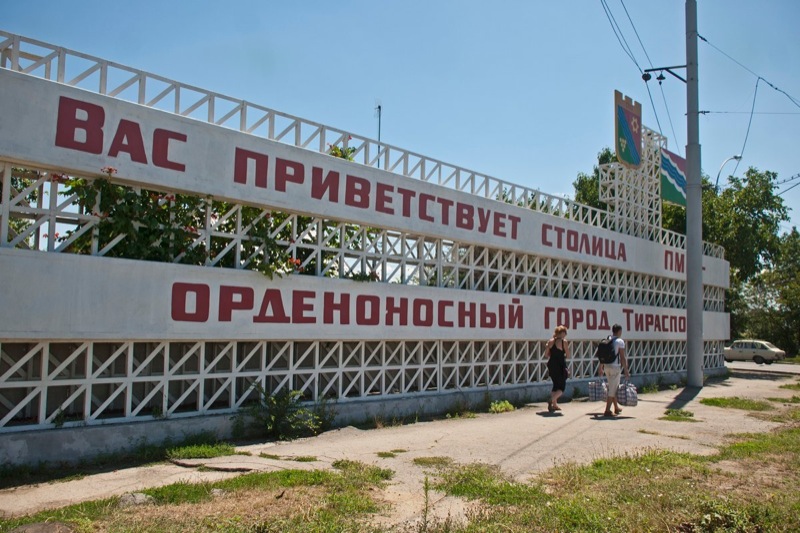 Un panou imens intampina vizitatorii la intrarea in Tiraspol