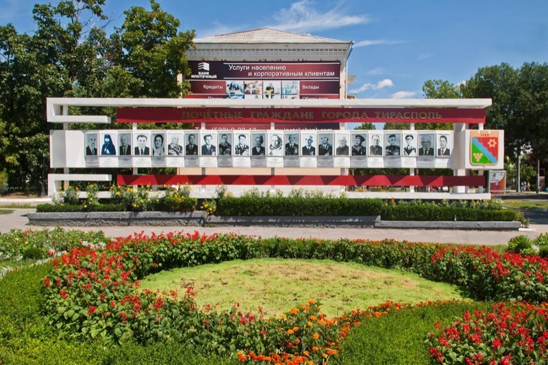 Un panou celebreaza „cetatenii de onoare ai Tiraspolului”. Fostul presedinte Igor Smirnov apare primul pe panou.