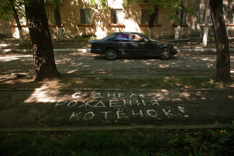 Textul de pe asfalt: La multi ani, Pisicuta!