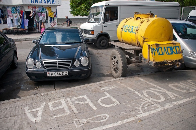 Vazand ca nu ne dam jos din masina, ne spune pe un ton indignat ca „ce, voi nu stiti sa va luati restul?”. Intr-un cos mic de paie de pe bord se afla un maldar de copeici, de cinci si de zece. Poate nu reprezinta o suma mare, dar la sfarsitul zilei, copeicile ramase de la calatori reprezinta un ciubuc frumusel. Desi exista statii amenajate, soferii opresc oriunde le ceri: la intersectie, la scoala, la magazin. Insa mai toate au capatul la piata centrala.