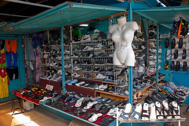La un cvartal distanta de piata centrala se afla bazarul. Preturile sunt afisate in ruble si doar la cateva dintre produse. Din curiozitate, intreb de pretul unor pantofi, iar raspunsul vine in dolari. Intreaba si Masa la alta tejghea si primeste acelasi raspuns, in dolari. Dupa un calcul rapid, inteleg ca preturile sunt semnificativ mai mari decat ce gasesti in Bucuresti, la Obor.