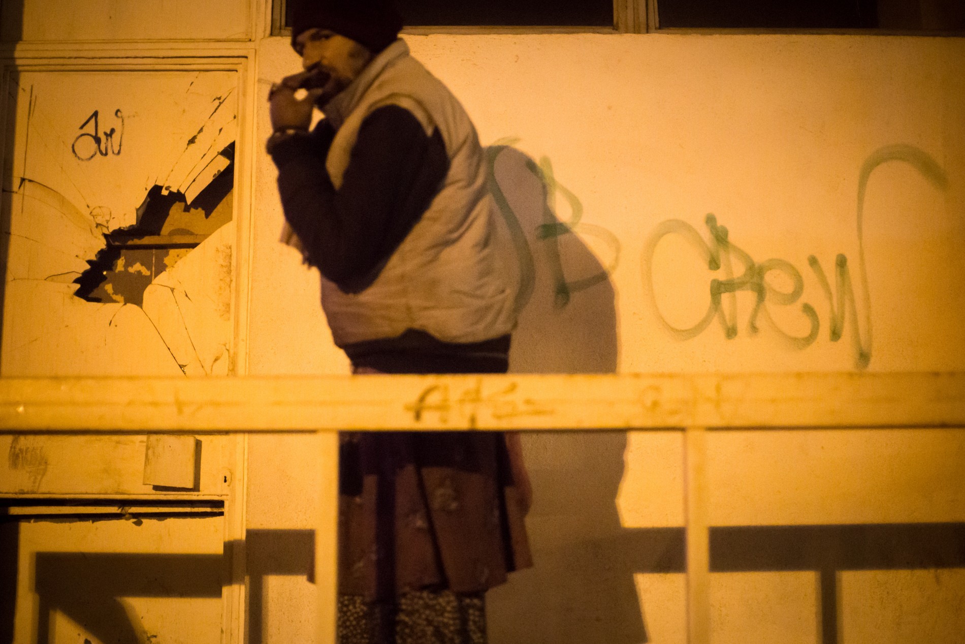 Urmează ultima oprire a serii, un bloc părăsit din Floreasca, unde se adăpostesc patru adulți. Fac cunoștință cu George și Tiberiu. George e retras, calm, se descrie ca fiind pasionat de IT, îmi vorbește cu pasiune despre ideile pe care le are, ar vrea să deschidă un blog și să le povestească oamenilor despre o nouă rețea socială.