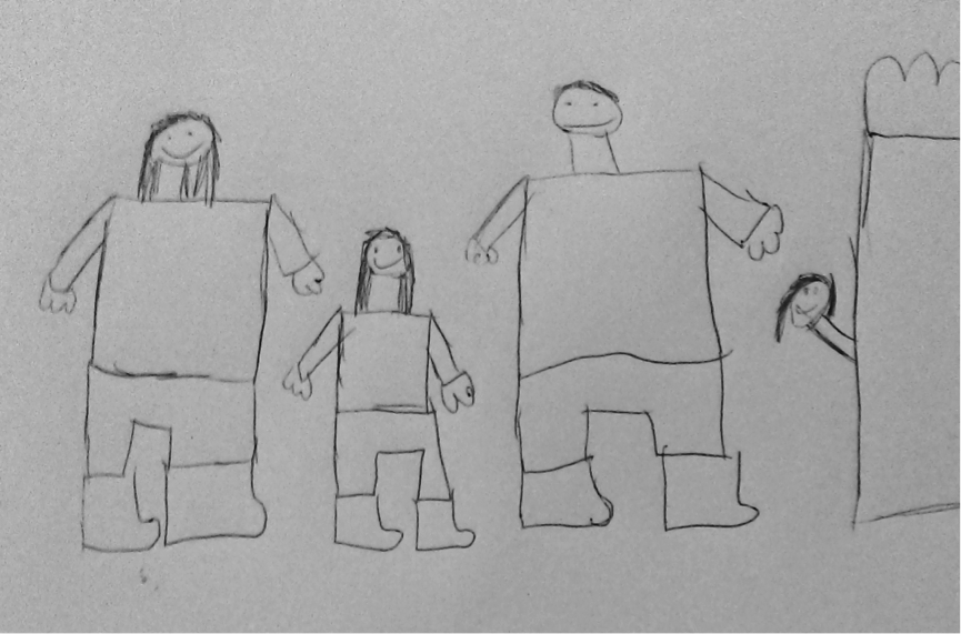 Fetița e afară, pe bancă, desenează, Colin îi oferă o eugenie, mă apropii să văd desenul, “ea e sora, Andreea, are cinci ani!”. “Ai o soră? Și tu unde ești în desenul ăsta?” întreabă Irina, “nu am, dar o să vină ea. Eu m-am ascuns, sunt acolo, uite, după copac”.