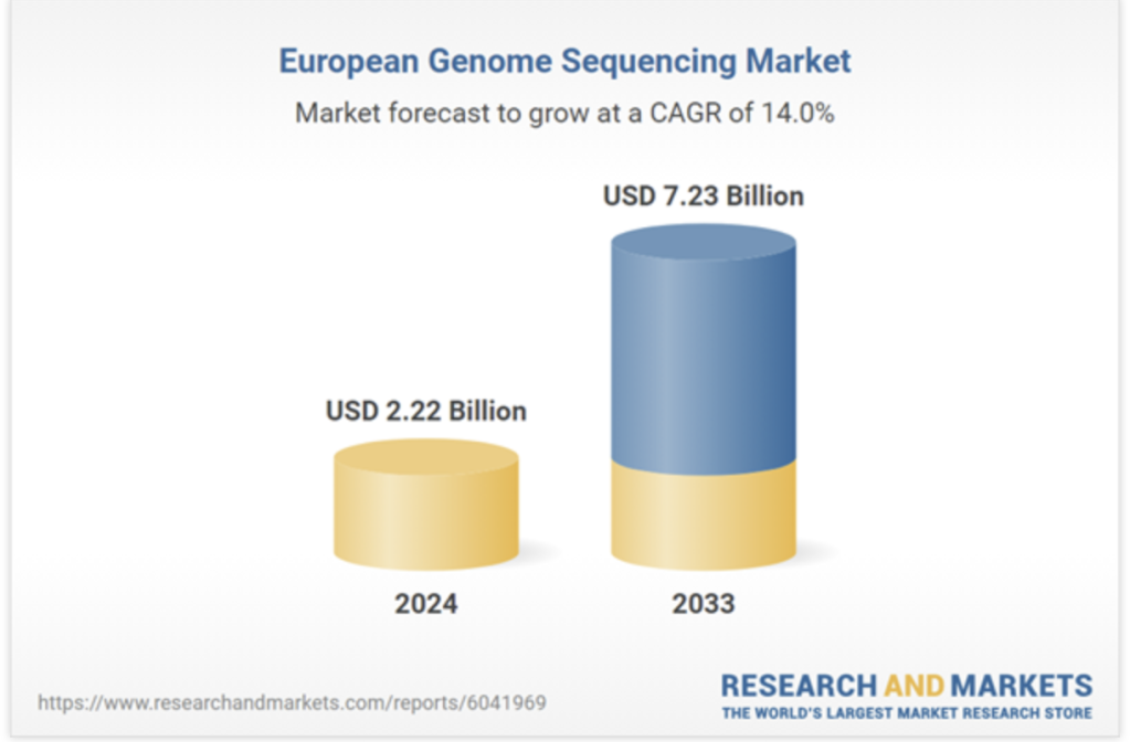 Accelerarea inițiativelor din domeniul geneticii este vizibilă și în dinamica industriei. În anul 2024, piața europeană de secvențiere genetică era evaluată la 2,2 de miliarde de dolari, fiind preconizată să ajungă la 7,2 miliarde de dolari până în 2033.