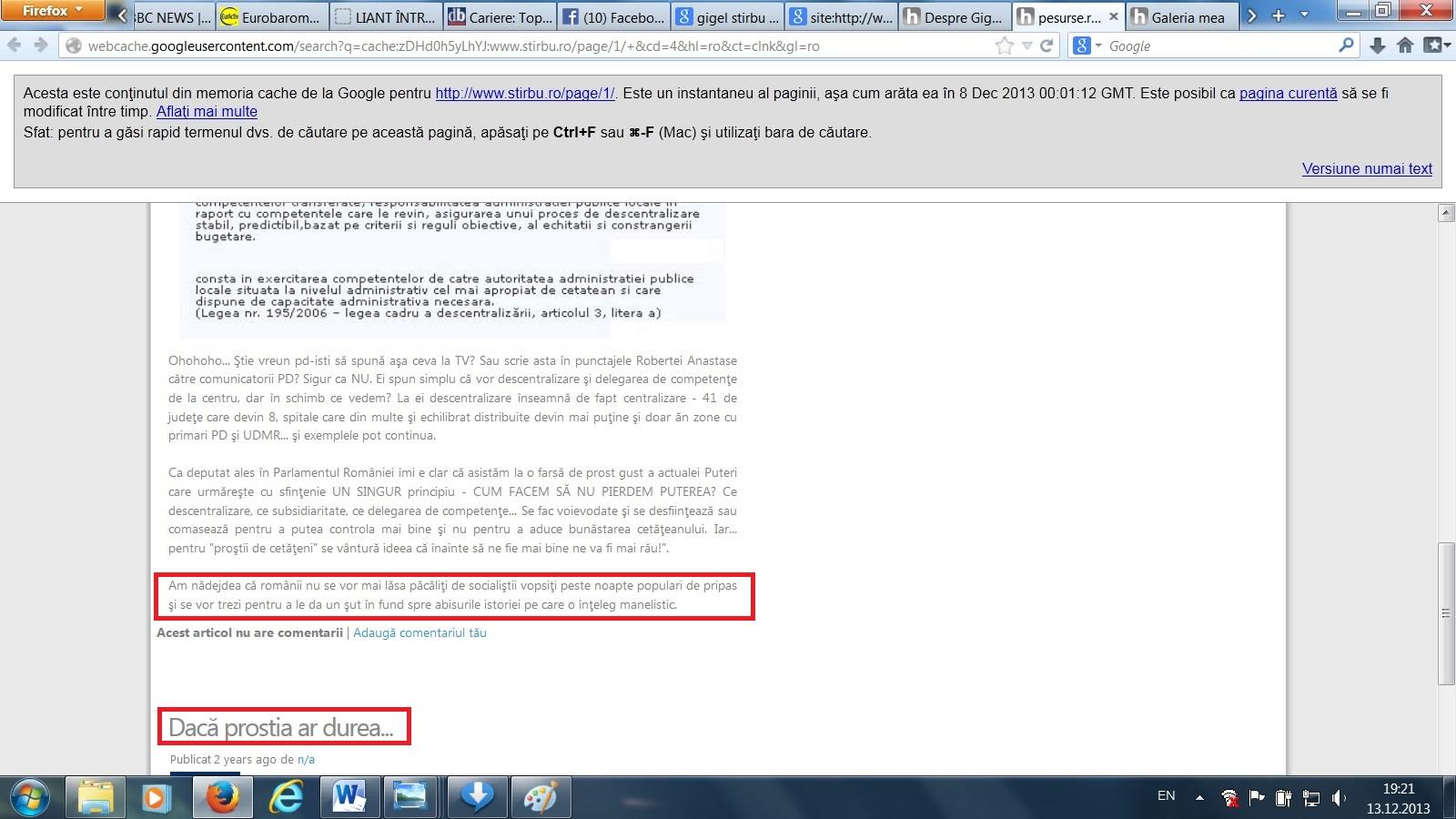 Cu toate acestea, dl. Gigel este plin de modestie si a preferat sa-si inchida site-ul[3] atunci cind a inceput sa se discute despre nominalizarea sa la minister. Probabil ca nu dorea sa-i complexeze pe eventualii contracandidati. Sintem in prezenta unui om deosebit! Noroc cu cache-ul de la Google…