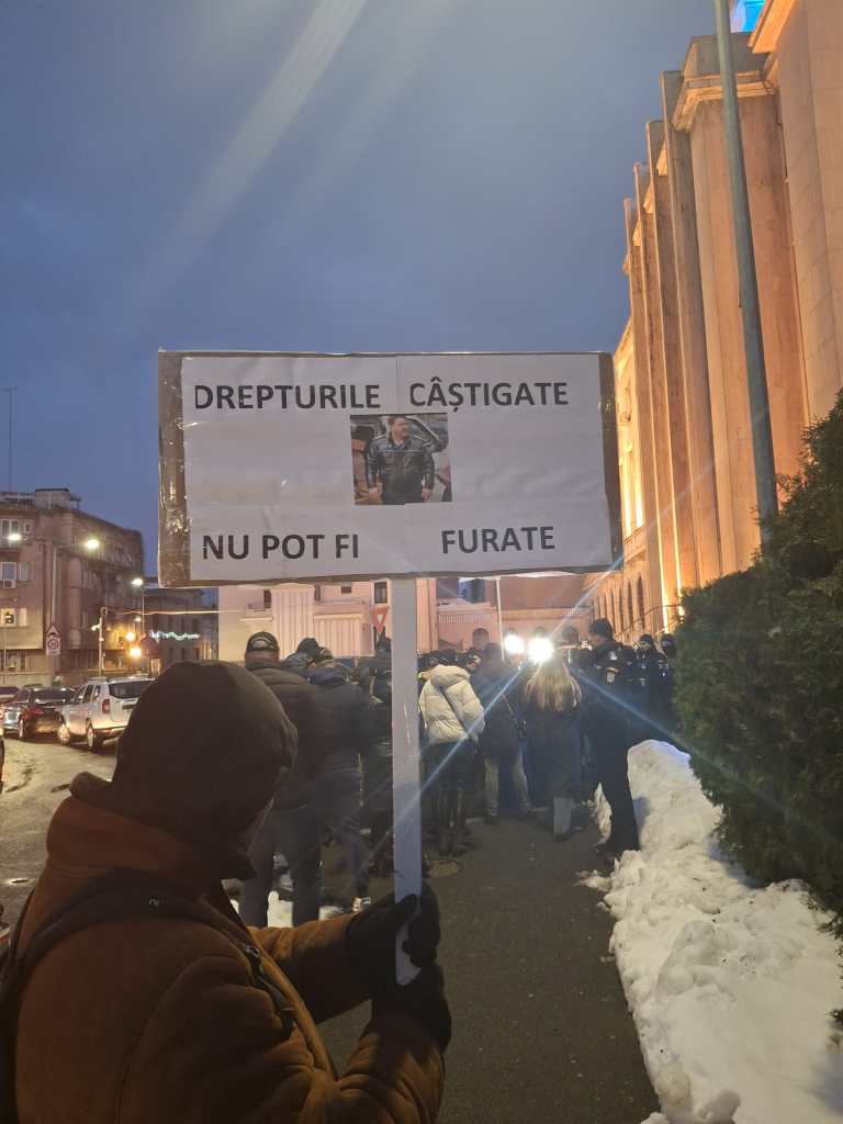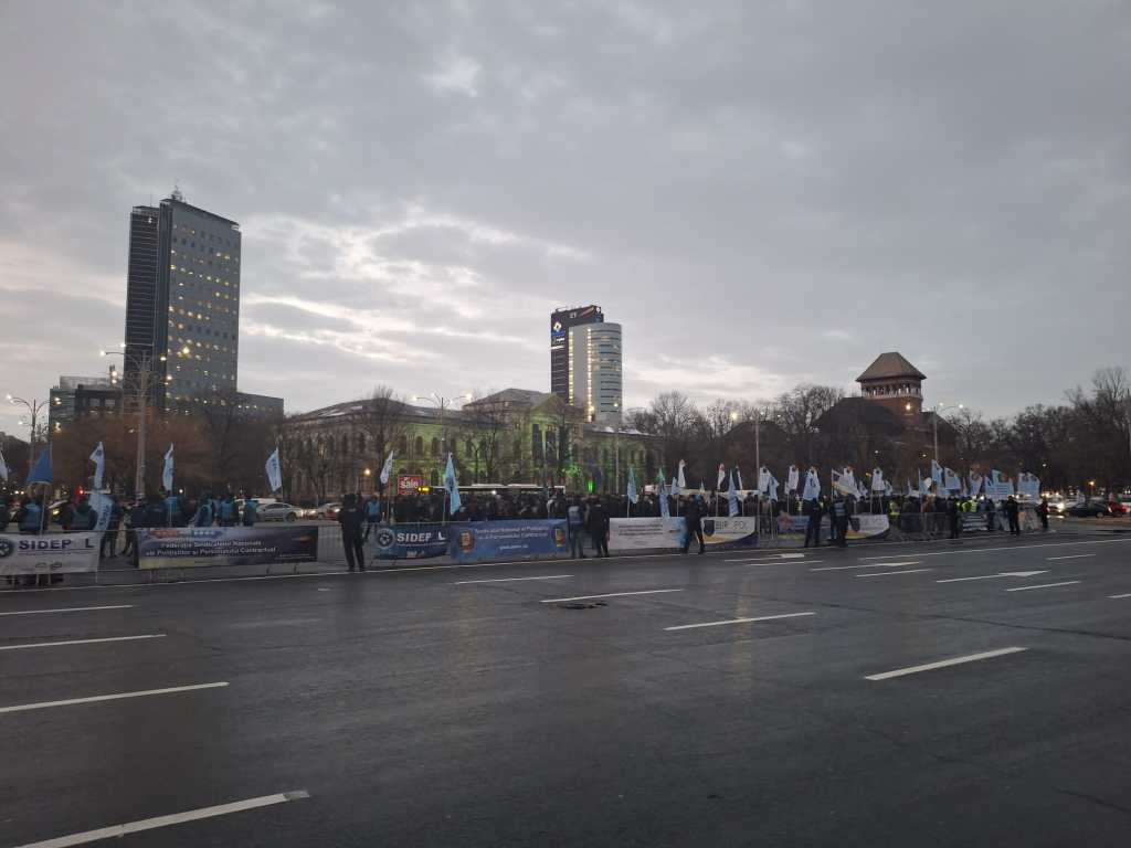 În fața Palatului Victoria are loc un protest organizat de către Sindicatul Naţional al Poliţiştilor şi al Personalului Contractual din MAI, la care participă câteva sute de persoane.