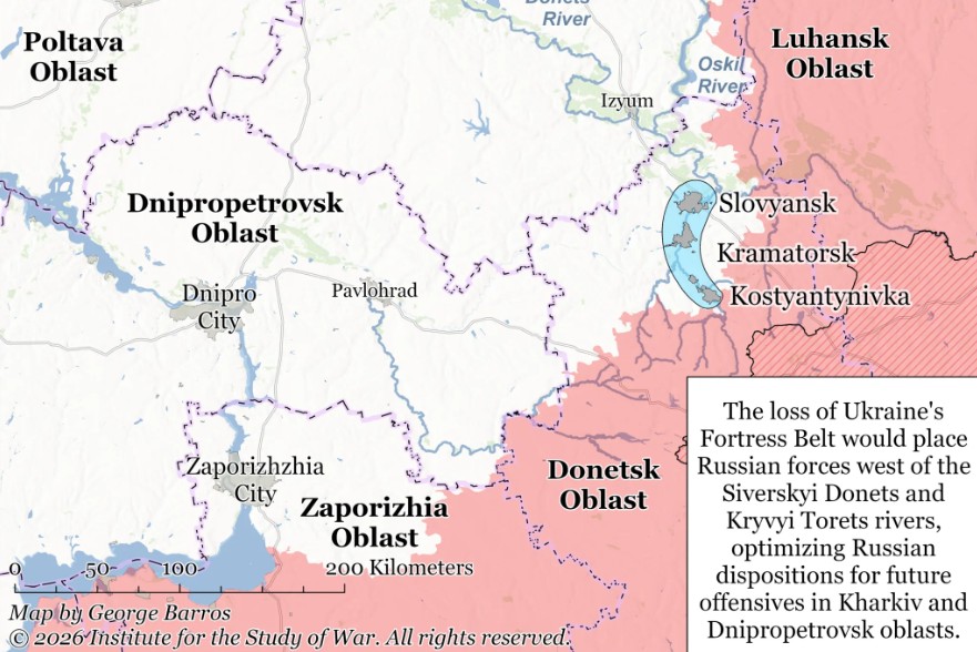 Rusia a cerut repetat în negocierile de pace ca Ucraina să se retragă din cei 19% din teritoriul regiunii Donețk pe care încă îl mai controlează. Însă Kievul a refuzat întrucât pe acel teritoriu se află Centura Fortărețelor, crucială pentru apărarea teritoriului ucrainean, scrie Institute for the Study of War (ISW).