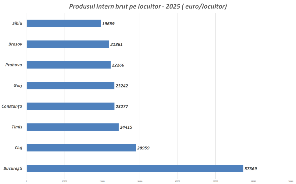 PIB/locuitor este cel mai bun indicator al nivelului de trai și al productivității economice. El arată câtă valoare economică produce, în medie, un locuitor al unui județ. Diferențele sunt mari în România — iar în 2025–2026 se adâncesc în anumite zone și se reduc în altele.
