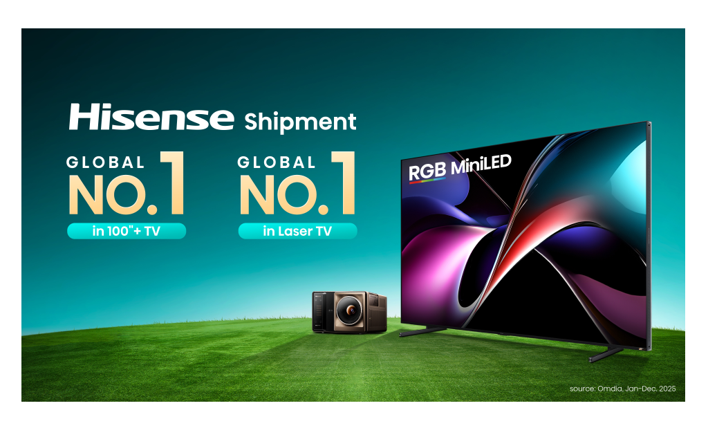 Hisense a ocupat în 2025 prima poziție la nivel global pe segmentul televizoarelor de 100 de inch (253 cm) și peste, potrivit datelor Omdia privind livrările mondiale pentru întregul an. Compania marchează astfel al treilea an consecutiv în care conduce această categorie, cu o cotă de 57,1% din livrările globale din 2025.