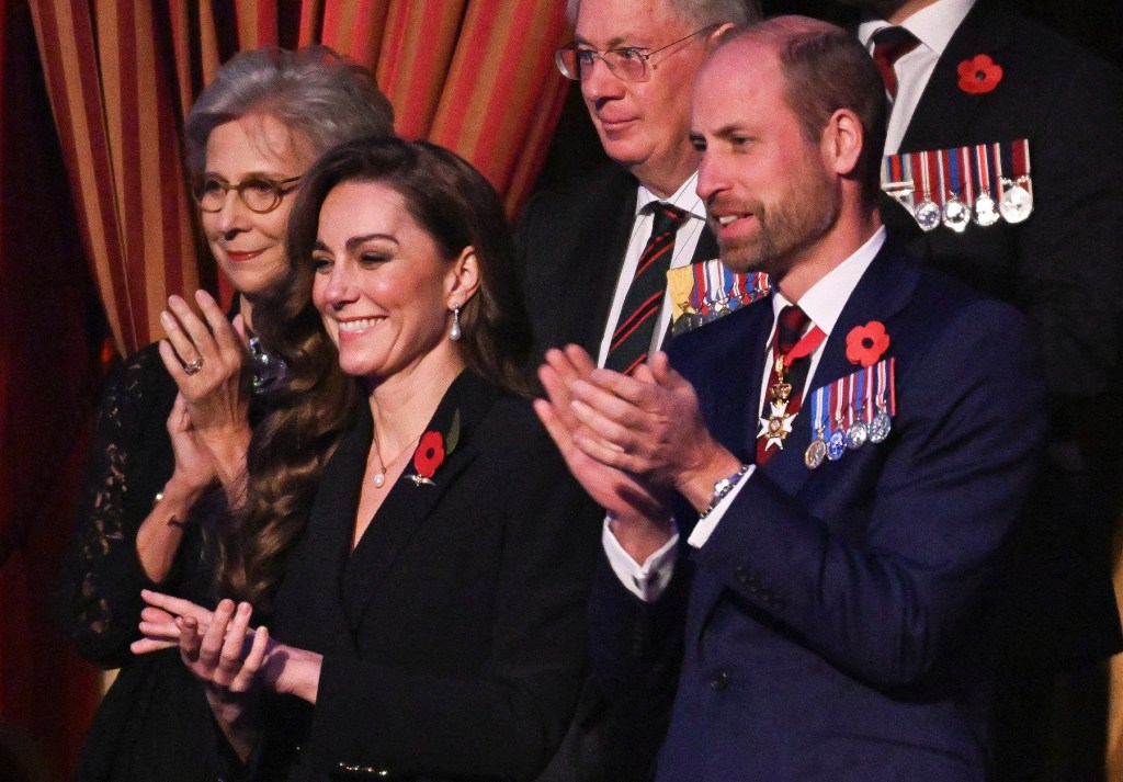 Kate Middleton a fost „radiantă”, potrivit presei britanice. Ea a purtat la eveniment o rochie neagră, un mac roșu în piept și cerceii cu perle și diamante “Collingwood” ai Prințesei Diana.