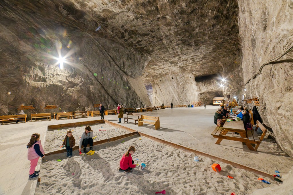 În sălile din subteranul minei turistice, turiștii găseau, între altele, terenuri de joacă pentru copii, restaurant, mese de tenis, terenuri de sport.