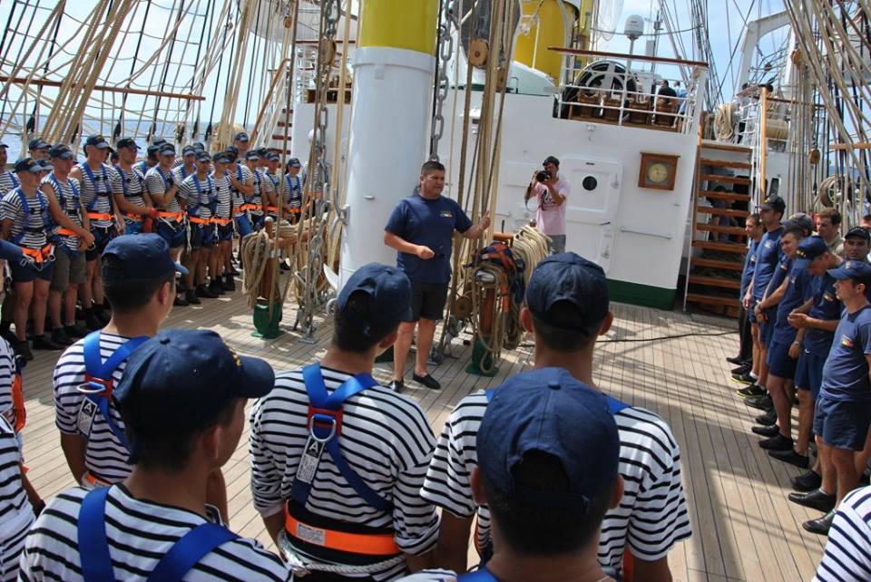 Echipajul de la bordul velierului este format din 157 de membri, dintre care 29 de studenti de la Academia Navala „Mircea cel Batran” si 52 de elevi ai Scolii Militare de Maistri Militari „Amiral Ion Murgescu”.