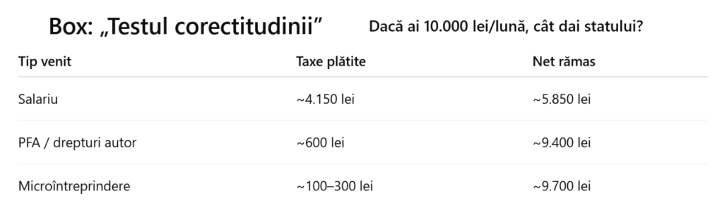 Un studiu amplu despre impozitarea veniturilor în România ajunge la o concluzie incomodă: sistemul fiscal actual nu taxează venitul, ci forma juridică. Asta este explicația pentru care angajați cu aceleași atribuții, care câștigă aproximativ la fel, plătesc taxe complet diferite. Nu este o excepție. Este regula.