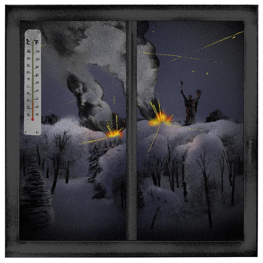 În timpul acestui sezon rece, au fost zile când mii de locuitori din capitala ucraineană au rămas fără căldură din cauza atacurilor ruse asupra infrastructurii energetice. Iar un alt desen al celor două desenatoare arată focul bombardamentului din timpul nopții.